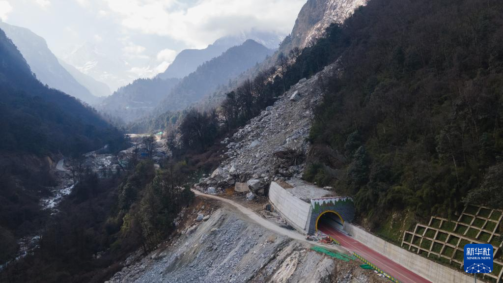 這是1月10日拍攝的海螺溝景區(qū)公路上一處新建的隧道(無(wú)人機(jī)照片)。景區(qū)重建時(shí),避開地質(zhì)災(zāi)害點(diǎn)新建了4個(gè)隧道,抗災(zāi)能力得到提升且縮短了通往景區(qū)的時(shí)間。新華社記者 胥冰潔 攝