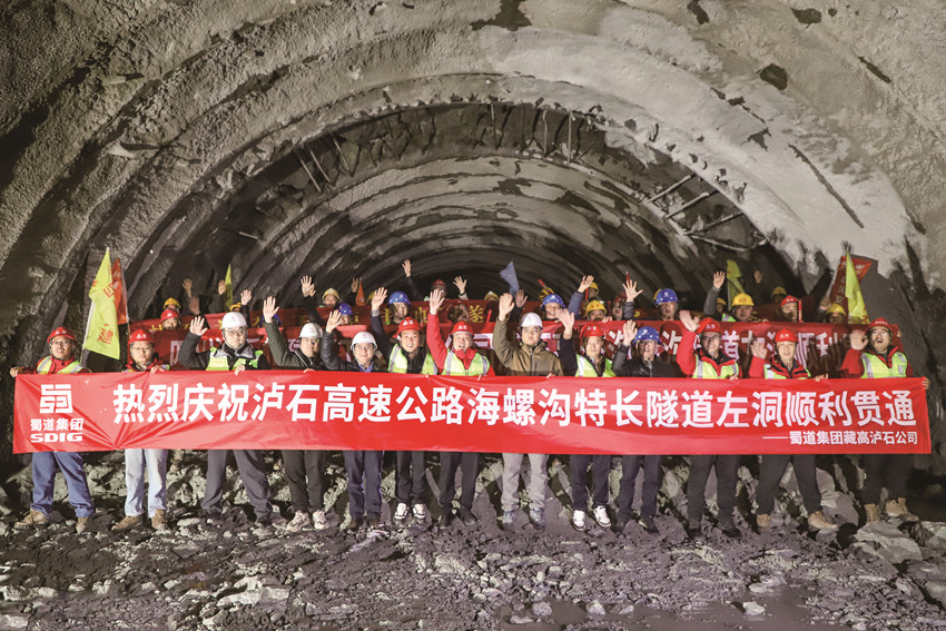瀘石高速海螺溝特長隧道左線貫通。