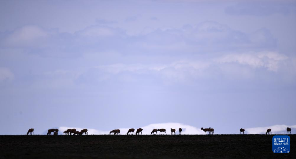 2023年7月27日,一群藏羚羊在可可西里境內(nèi)活動(dòng)。新華社記者 張宏祥 攝