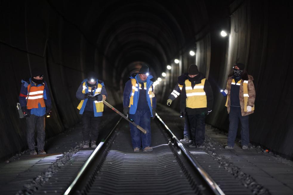 “路基變化、氣候波動……這些因素都是研究凍土影響的關鍵數(shù)據(jù),一絲一毫的變化都會導致線路出現(xiàn)不同的問題。”工人們來到作業(yè)地點開始上道作業(yè),張福強掏出一本快被翻爛的筆記本,一邊記下這次養(yǎng)護的氣候及線路數(shù)據(jù),一邊和工友們向隧道深處走去。