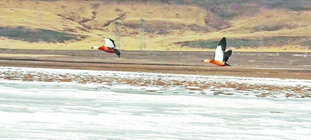 青海隆寶灘國際重要濕地迎來春天首批赤麻鴨