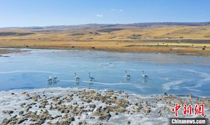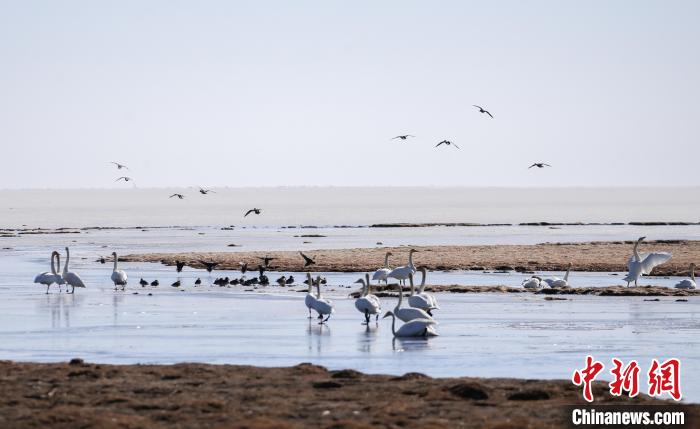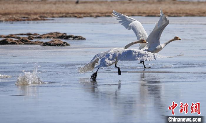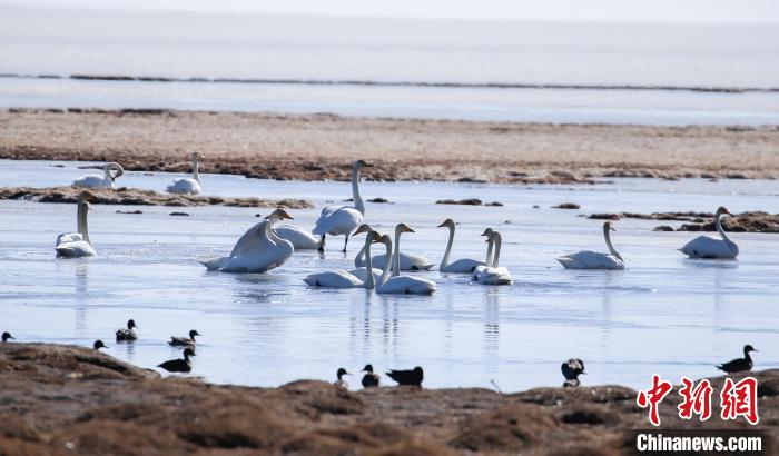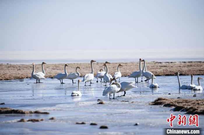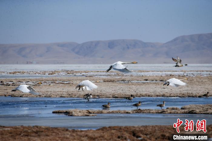 3月13日,青海省海南藏族自治州共和縣境內(nèi)的青海湖泉灣濕地,大天鵝沐浴春日暖陽。隨著天氣轉(zhuǎn)暖,大天鵝、斑頭雁、赤麻鴨等水鳥聚集在青海湖泉灣濕地,時(shí)而振翅飛翔、時(shí)而戲水覓食,鳴叫聲不絕,為仍處于冰封的青海湖增添生機(jī)和活力。