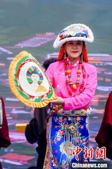 圖為身著民族服飾的演員們展示果洛特色產(chǎn)品。果洛州文體旅游廣電局 供圖