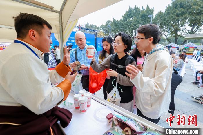 圖為廣州市民體驗果洛特產(chǎn)。果洛州文體旅游廣電局 供圖