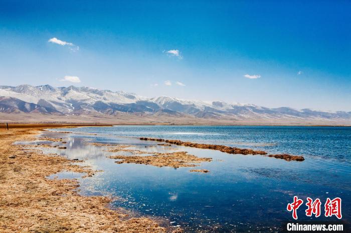 圖為消融的青海湖與遠(yuǎn)處雪山形成醉人畫卷。趙海梅 攝
