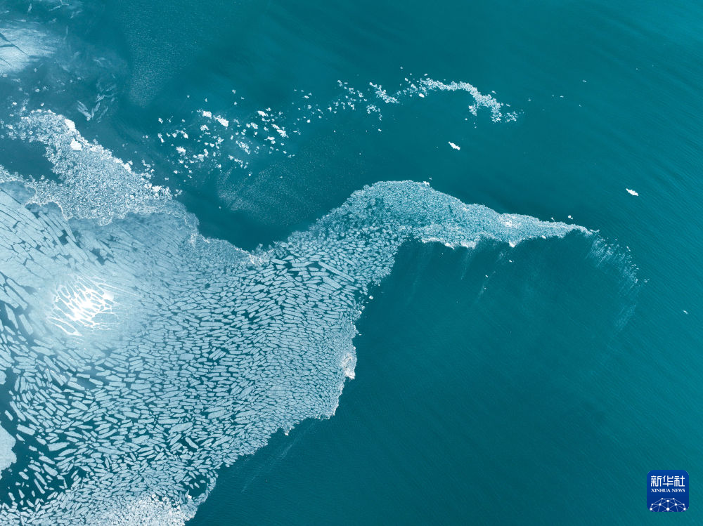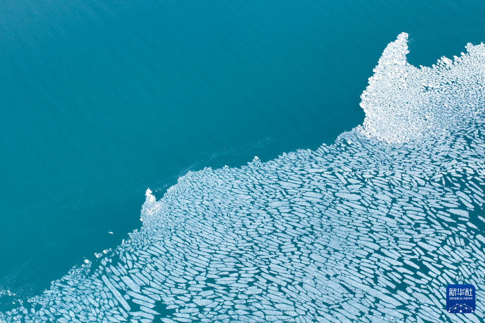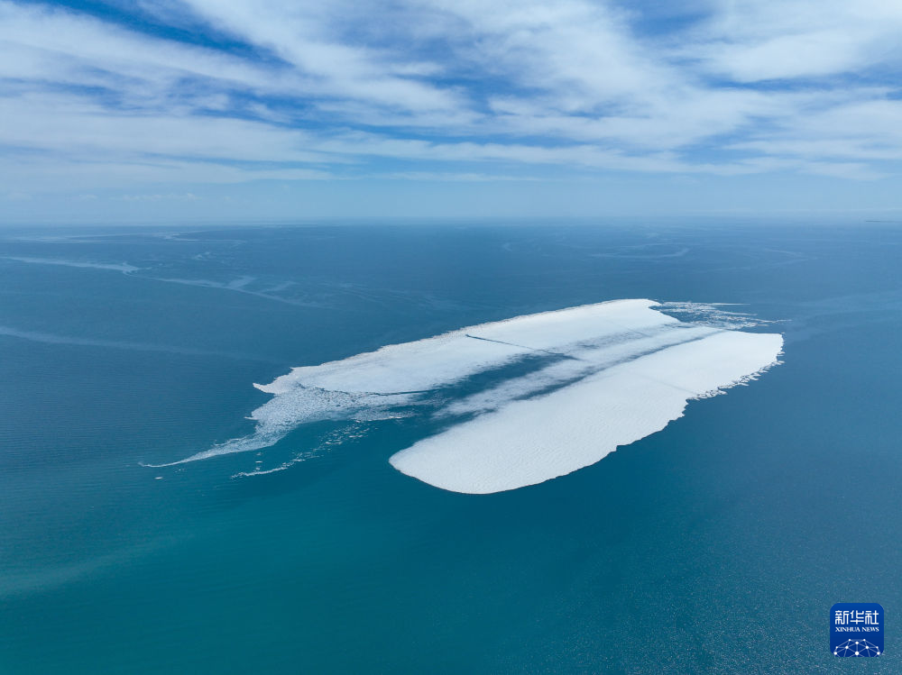 這是4月11日在青海湖拍攝的未融化的湖冰(無人機(jī)照片)。新華社記者 張龍 攝