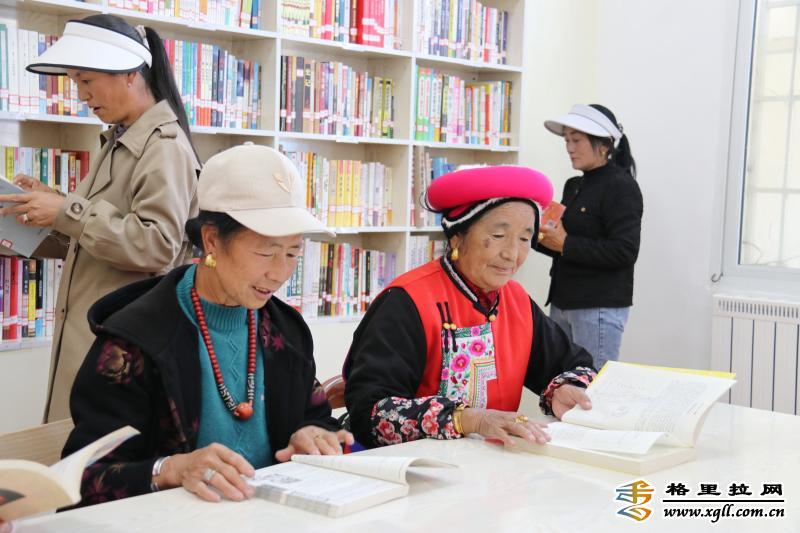 在香格里拉市建塘鎮(zhèn)北郊社區(qū)農(nóng)家書屋,身著民族服飾的老人們安靜地翻閱著各類書籍?!断愀窭锢h志》《中醫(yī)養(yǎng)生》《家常菜做法大全》等書籍讓老人們沉浸在知識(shí)的海洋里。