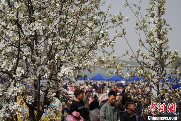 圖為梨花開放,吸引大量游客前來觀賞。馬銘言 攝