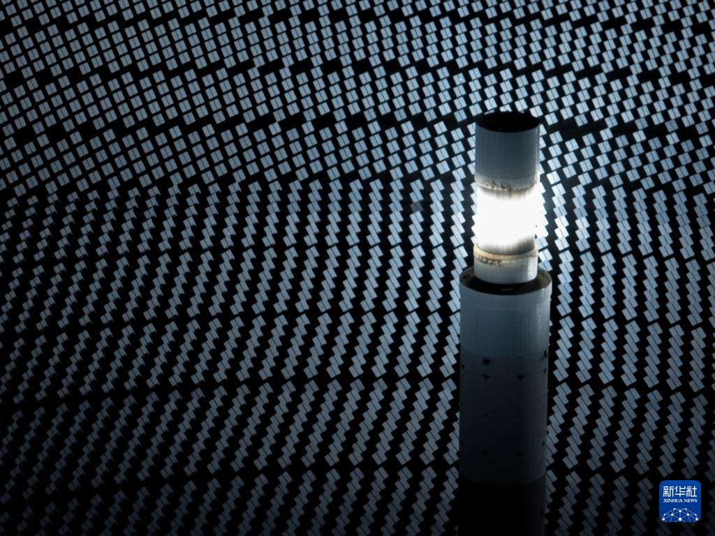 這是4月23日在青海省海西蒙古族藏族自治州德令哈市光伏(光熱)產(chǎn)業(yè)園拍攝的光熱電站(無(wú)人機(jī)照片)。新華社記者 張龍 攝