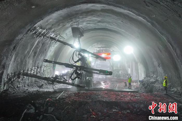 德勝隧道貫通后,施工人員加緊進行洞壁加固施工作業(yè)。劉忠俊 攝