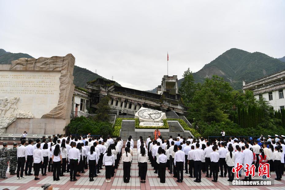 5月12日,四川省汶川縣在映秀鎮(zhèn)漩口中學遺址開展“5·12”汶川特大地震16周年追思活動。來自汶川縣和全國各地的民眾為在汶川地震中遇難的同胞默哀,獻花祭奠,表達對逝者的哀思和懷念之情。圖為敬獻鮮花。盧國彤 攝