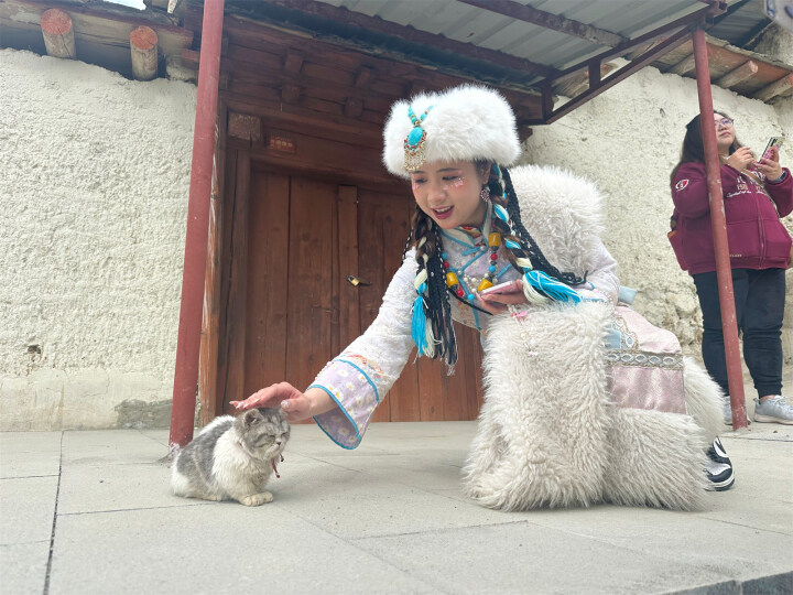 在景區(qū)內(nèi),隨處可見身穿藏族服飾、化上高原紅曬傷妝的游客們變身“扎西和卓瑪”,攝影師圍著她們忙前忙后,快門聲此起彼伏?!班牛谩薄熬褪沁@樣,保持笑容”“下巴揚(yáng)起來”……在攝影師的引導(dǎo)下,““扎西和卓瑪””變換著姿勢(shì),拍下一張張景區(qū)打卡照。