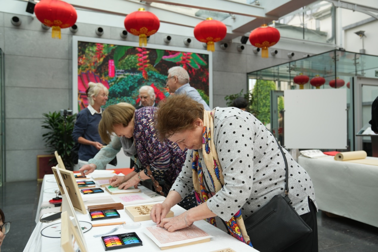 有著1800多年歷史的傳拓,堪稱“中國最古老的印刷術(shù)”,是一種重要的文物保護(hù)和古籍修復(fù)技術(shù)。發(fā)展至今,已從拓金石發(fā)展為萬物可拓;從拓文字、圖案發(fā)展為全形拓。為讓歐洲民眾近距離感受傳拓的獨(dú)特魅力,昆明市非物質(zhì)文化遺產(chǎn)傳承人張衡特別創(chuàng)作集立體拓、書法、篆刻等多種藝術(shù)形式為一體的“普洱茶拓”,并定制“云騰四海·茗動(dòng)天下”“茶馬古道”等拓版供嘉賓體驗(yàn)。
