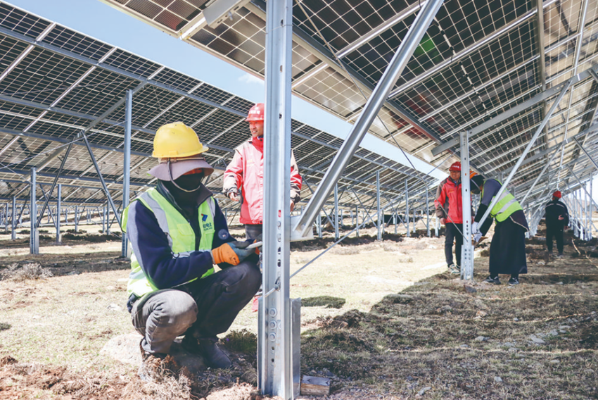 正午的陽(yáng)光灼熱,呷瑪丁建全副武裝地操作著器械,逐一摸排著光伏板組件的螺絲有無(wú)松動(dòng)、支架有無(wú)斷裂、陣列是否完好,同其他20多名工人一道對(duì)樂(lè)拉光伏電站進(jìn)行最后一輪安裝收尾消缺工作。工人們動(dòng)作嫻熟、速度很快,不一會(huì)兒,一個(gè)光伏板方陣便被“無(wú)死角”檢查排患完畢。