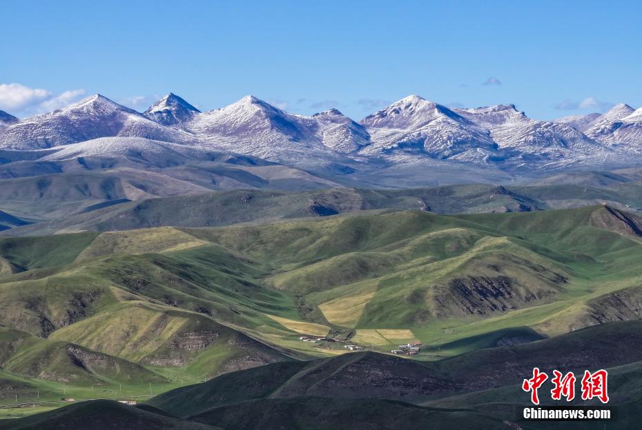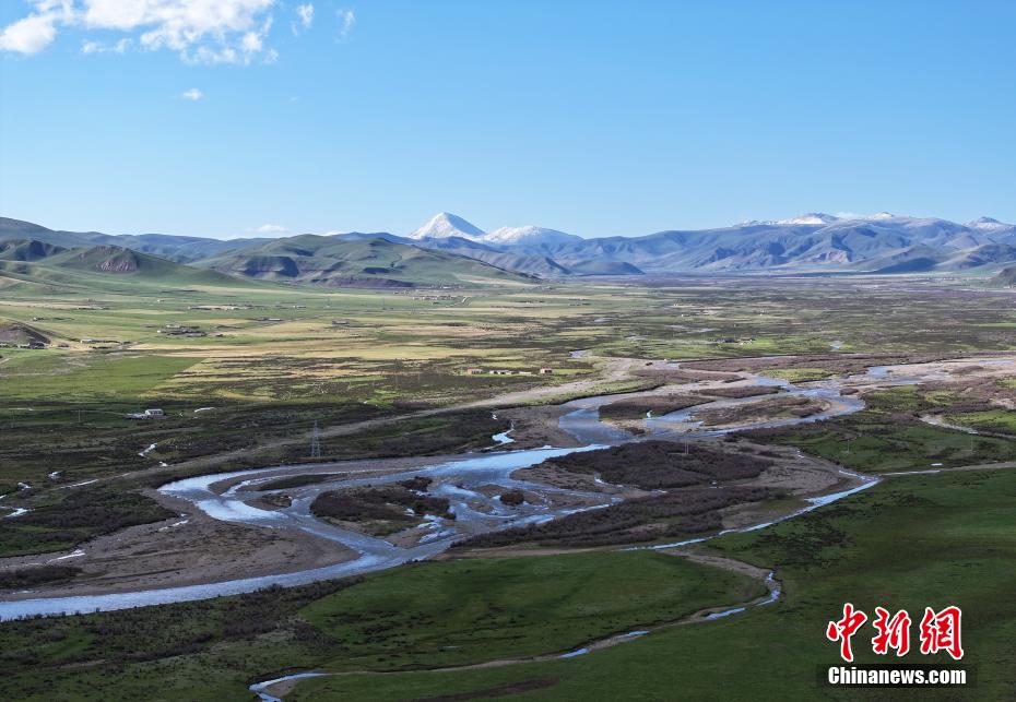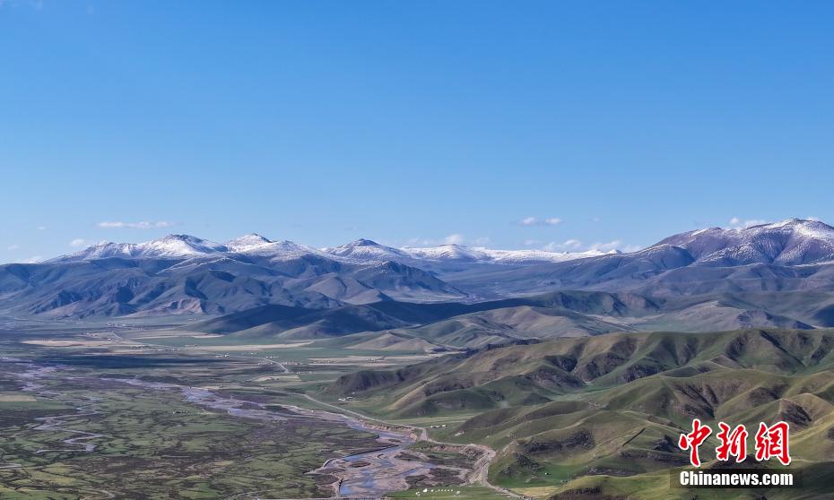 6月4日,航拍青海省海北藏族自治州剛察縣夏日草原秀美風光。馬銘言 攝