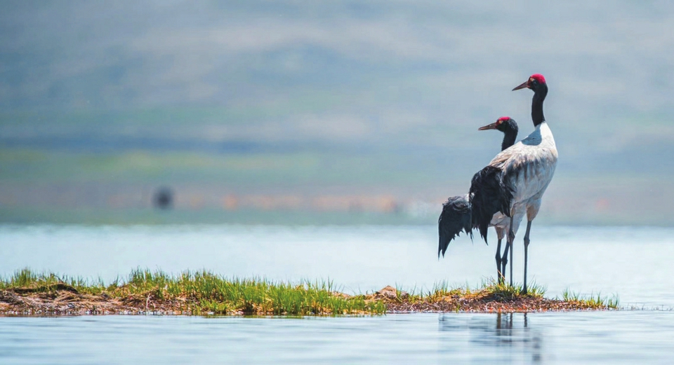 四川若爾蓋濕地國家級(jí)保護(hù)區(qū)內(nèi)的黑頸鶴。受訪者供圖