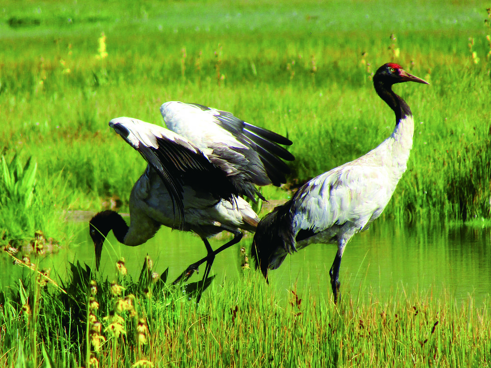 黑頸鶴翩翩起舞。