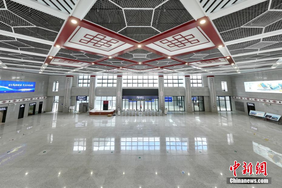 圖為7月7日拍攝的川青鐵路黃龍九寨站候車大廳一角。(無(wú)人機(jī)照片)中新社記者 劉忠俊 攝