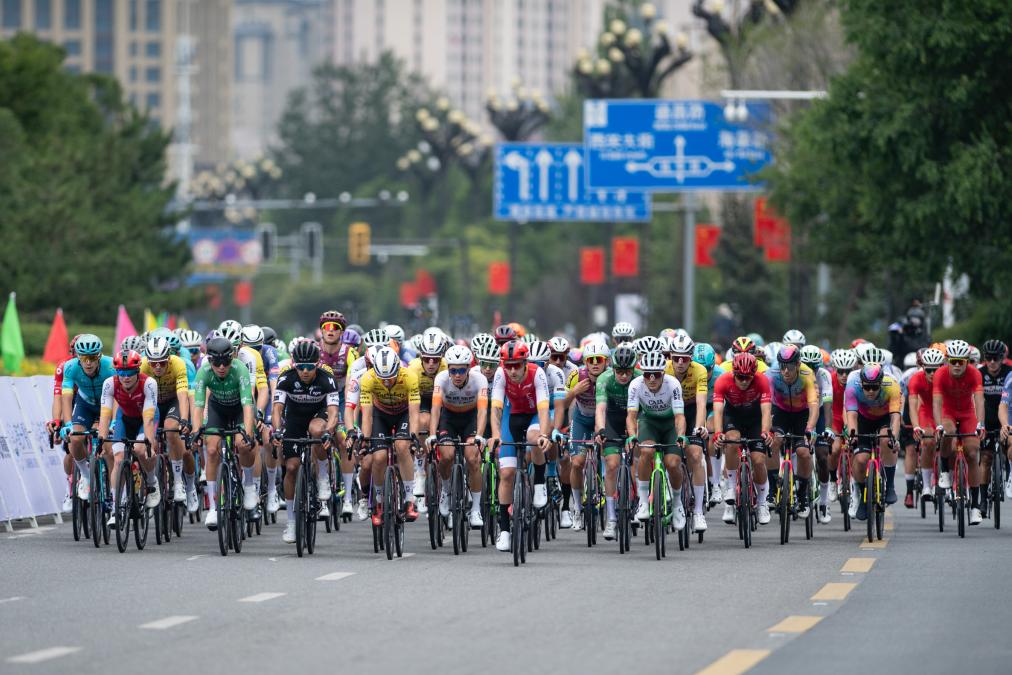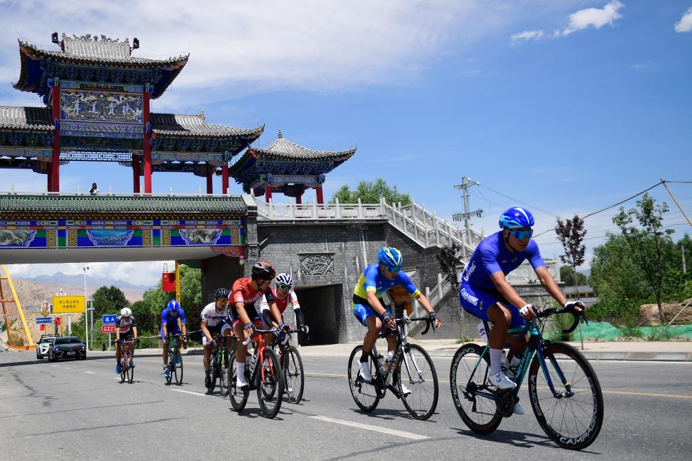 2023年7月9日,第22屆環(huán)青海湖國際公路自行車賽結(jié)束第一賽段西寧繞圈賽的角逐。新華社記者 張龍 攝