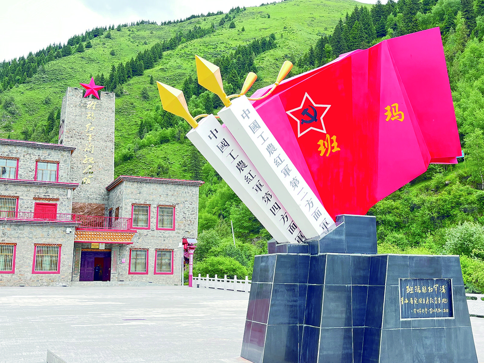 班瑪紅軍溝景區(qū)內(nèi)的紅旗雕塑。李永波 攝