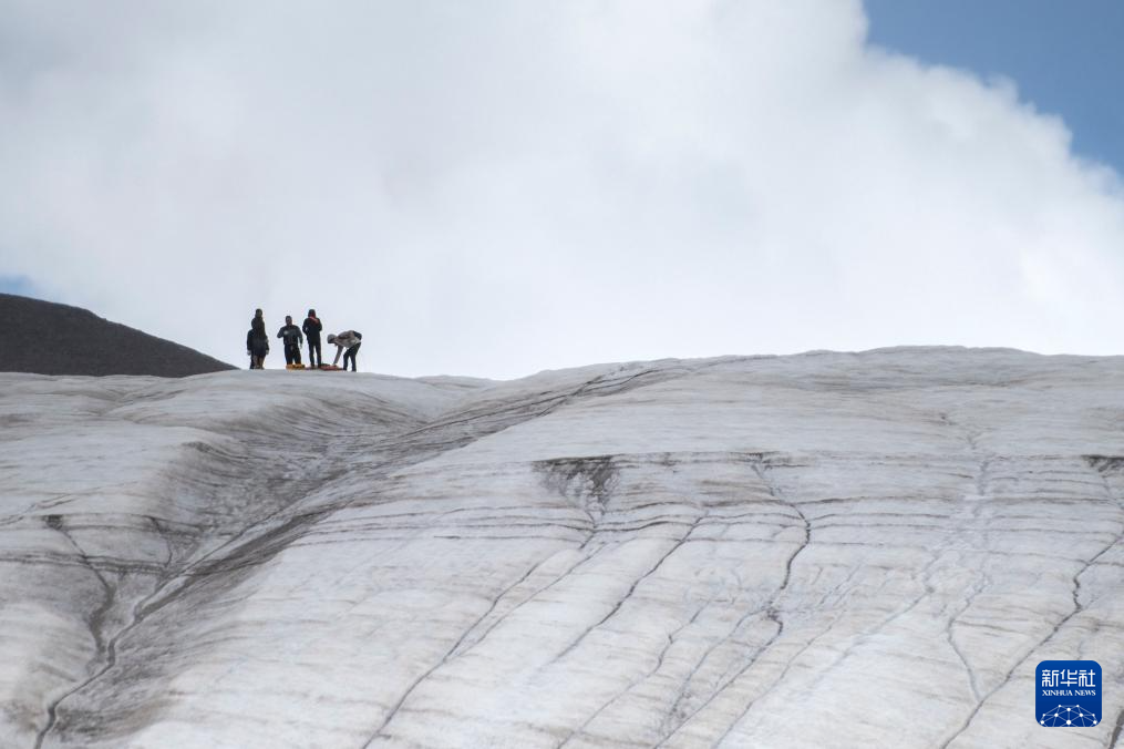 7月25日,在冬克瑪?shù)妆?,科考隊員在進(jìn)行冰川厚度探測及冰儲量匡算工作。新華社記者 伍志尊 攝
