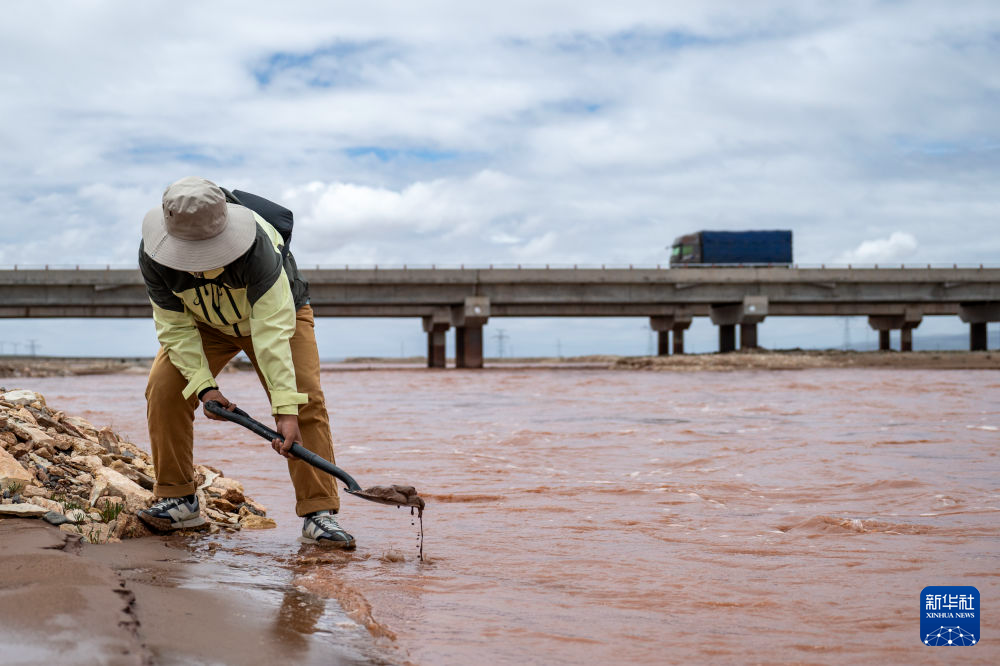 7月26日,科考隊(duì)員在楚瑪爾河進(jìn)行床沙采集工作。新華社記者 伍志尊 攝