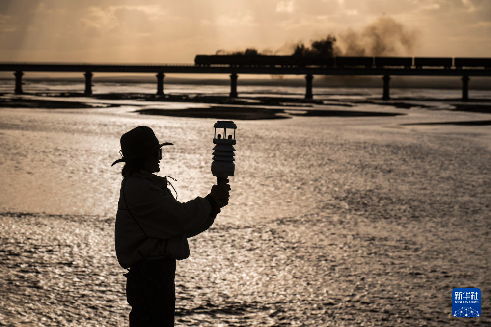 7月24日,科考隊(duì)員在沱沱河測(cè)量現(xiàn)場(chǎng)氣象條件。新華社記者 伍志尊 攝