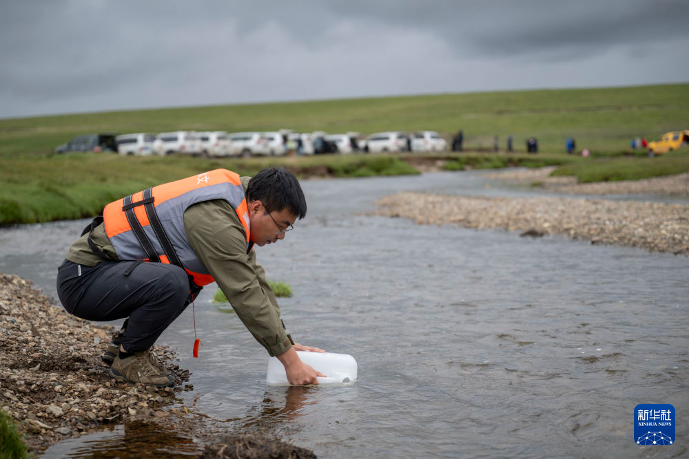 7月22日,科考隊(duì)員在當(dāng)曲源進(jìn)行水樣采集工作。新華社記者 陳杰 攝