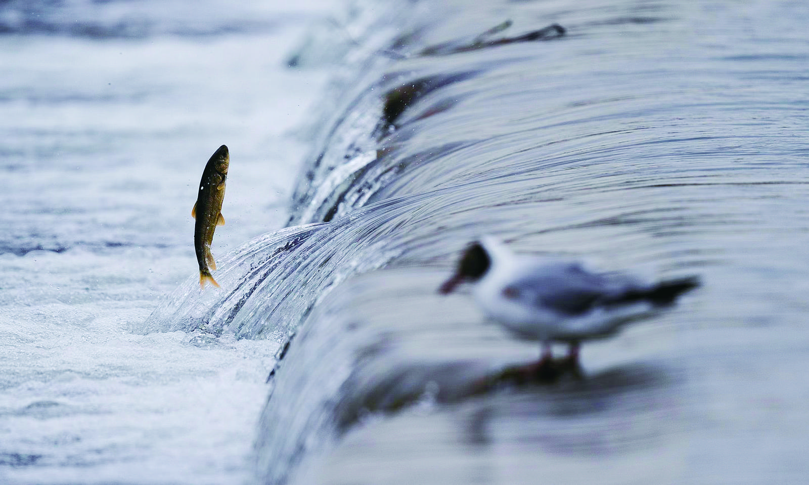清澈的泉吉河,靜靜地流向青海湖,河道里的湟魚與湍急的水流競(jìng)賽,在縱身一躍的起落間拾級(jí)而上,還有的湟魚靜靜蟄伏在水底躲避“天敵”,但依舊有棕頭鷗和鸕鶿低旋在水面上不時(shí)啄向水中,“魚鳥大戰(zhàn)”的精彩不時(shí)被河岸上的長(zhǎng)鏡頭抓拍?!棒~多了鳥就多了,青海湖變得更有生機(jī)了!”守護(hù)湟魚多年的張小云不由感慨。