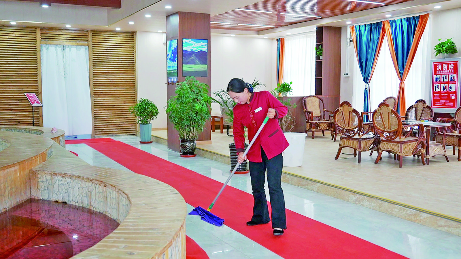 今年,通過改造后的溫泉酒店擁有客房19間,還增加了餐飲項目,帶動村里畜產(chǎn)品銷售,同時帶動村民增收?!艾F(xiàn)在客房還是太少,滿足不了旅行社、旅游團的需求,為此,我們引導村民發(fā)展牧家樂,游客可以自由選擇,體驗藏族風情。”昂秀拉夫旦說。