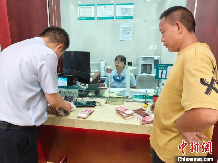 鄧先生帶著鈔票來到銀行網(wǎng)點??刀ù蠖珊又?供圖