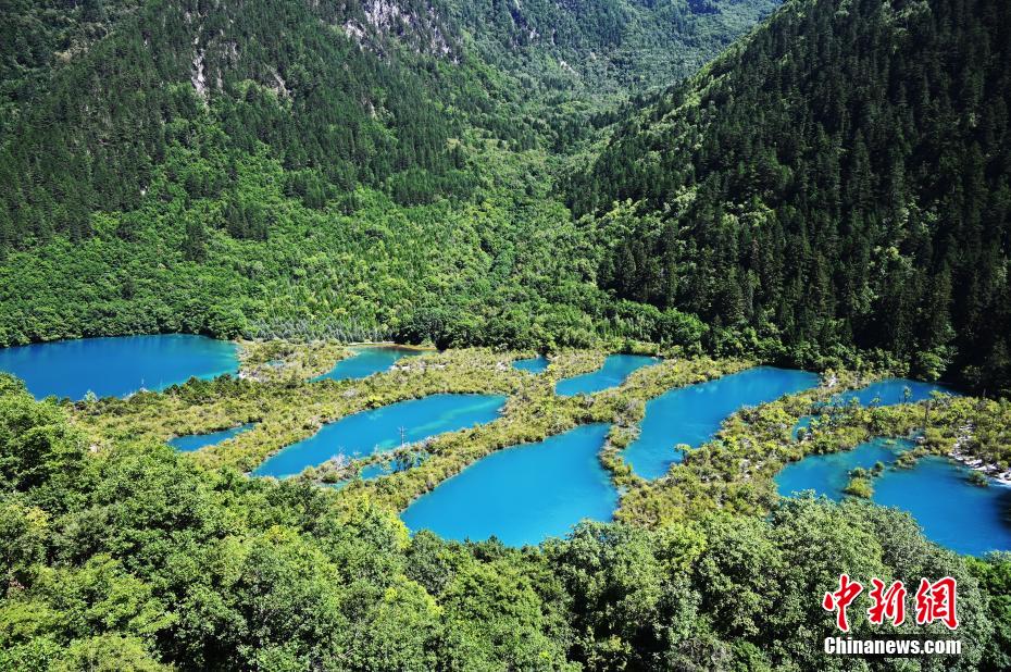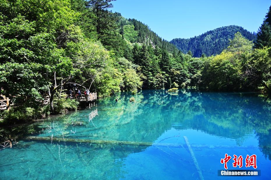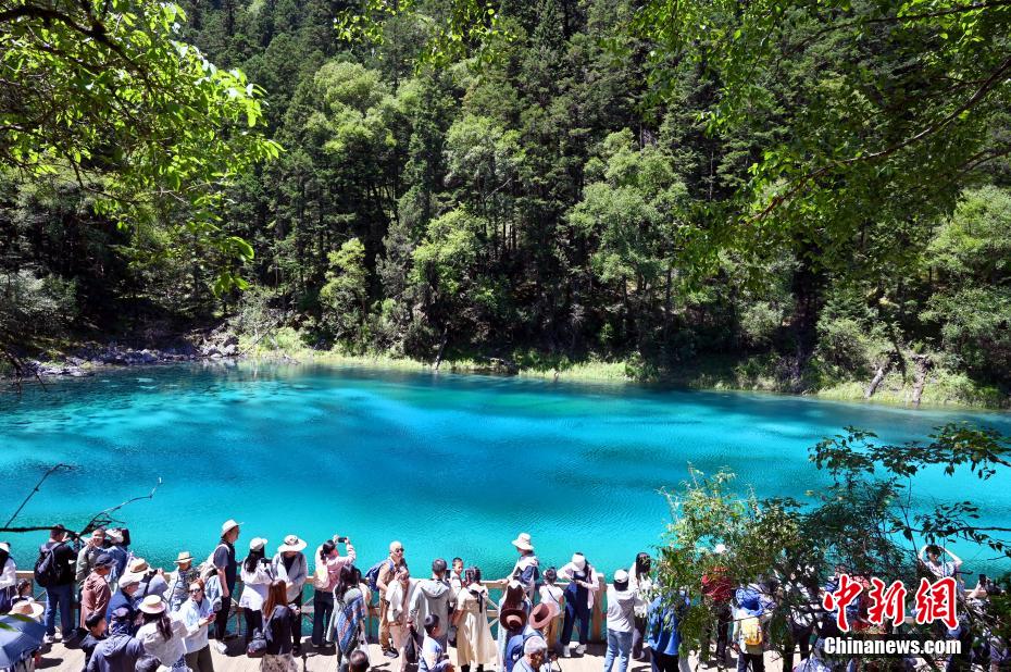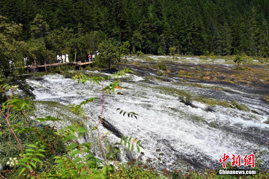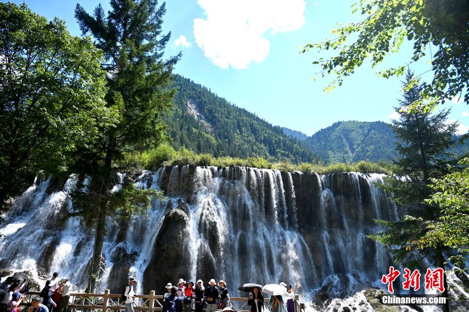 8月13日,世界自然遺產(chǎn)地九寨溝景區(qū)風(fēng)景如畫,吸引眾多游客觀光游玩。