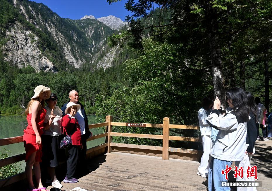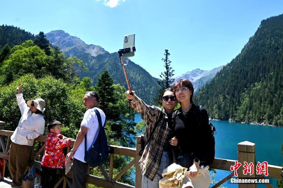 圖為游客在九寨溝景區(qū)拍照留念。中新社記者 安源 攝