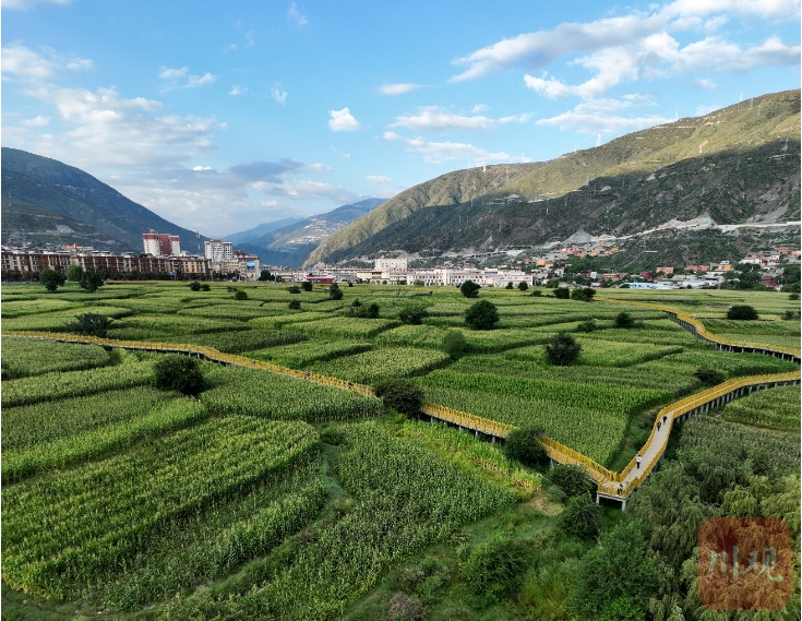 巴塘河流經(jīng)田園棧道全景