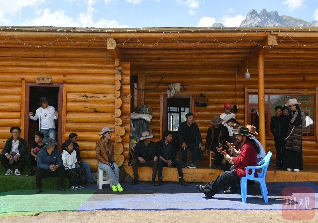 格木村村民的日常生活,在藍(lán)天下彈唱巴塘弦子。
