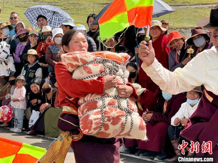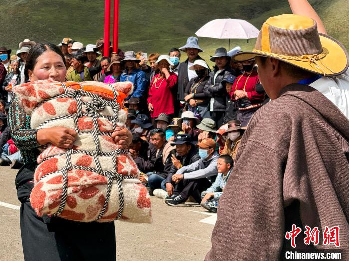 9月11日,在青海省果洛藏族自治州甘德縣2024年“農(nóng)牧民豐收節(jié)”期間,當(dāng)?shù)嘏e辦民族傳統(tǒng)體育賽事——抱沙袋比賽,民眾熱情參與,共慶豐收。比賽中,選手需要抱起立方體的沙袋(男子:140公斤;女子:75公斤),從起點(diǎn)走向50米外的終點(diǎn)處,若能從終點(diǎn)折返,則成績(jī)更佳,最終,走過距離最長(zhǎng)的選手獲勝。抱沙袋是藏族傳統(tǒng)體育項(xiàng)目,藏族民眾在生產(chǎn)生活中需扛起重物放到牛鞍、馬鞍上,漸漸演變出這項(xiàng)運(yùn)動(dòng)。