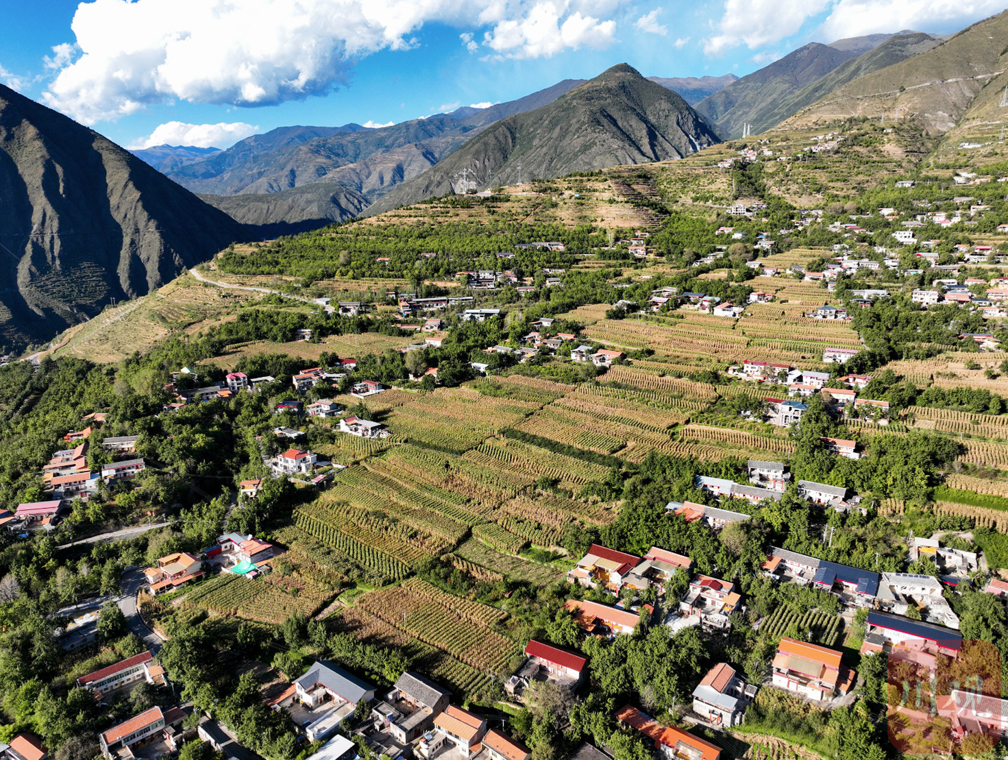 10月8日下午,四川省阿壩藏族羌族自治州金川縣咯爾鄉(xiāng)復(fù)興村展現(xiàn)出了一幅令人心曠神怡的美景。夕陽余暉灑落,色彩斑斕的民居在山坡上錯落有致地排列,宛如一顆顆璀璨的明珠。與民居交相輝映的是漫山遍野的梨樹,它們在微風(fēng)中輕輕搖曳,訴說著豐收的喜悅。整個村莊被金色的陽光籠罩,構(gòu)成了一幅美麗鄉(xiāng)村的新畫卷,讓人流連忘返。