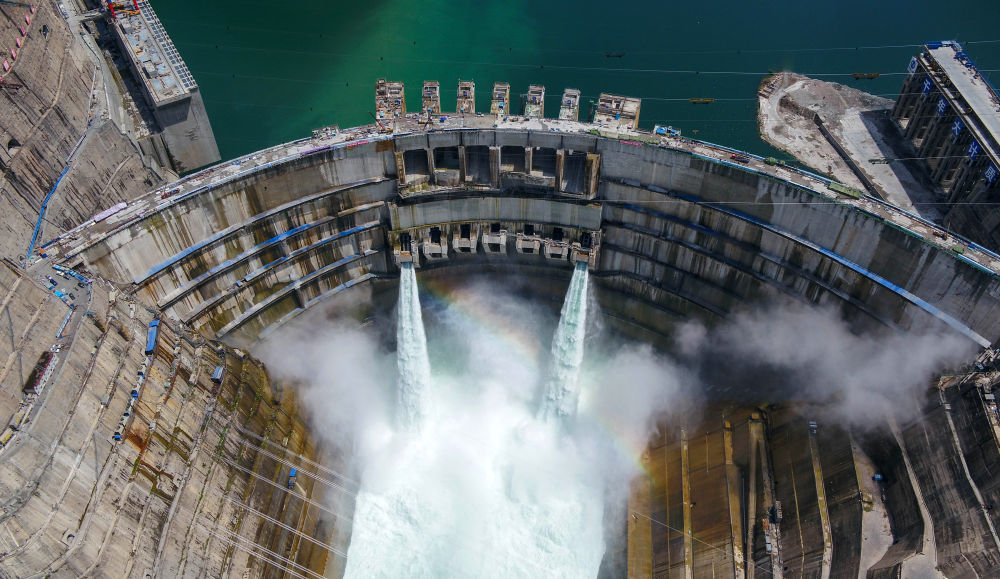 這是金沙江下游白鶴灘水電站(2021年6月10日攝,無人機(jī)照片)。新華社記者 胥冰潔 攝