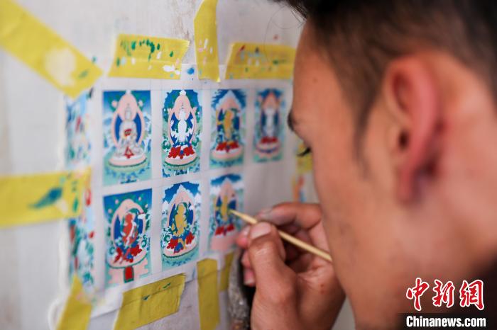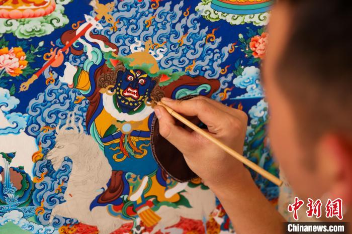 圖為畫師在繪制熱貢唐卡。中新社記者 薛蒂 攝