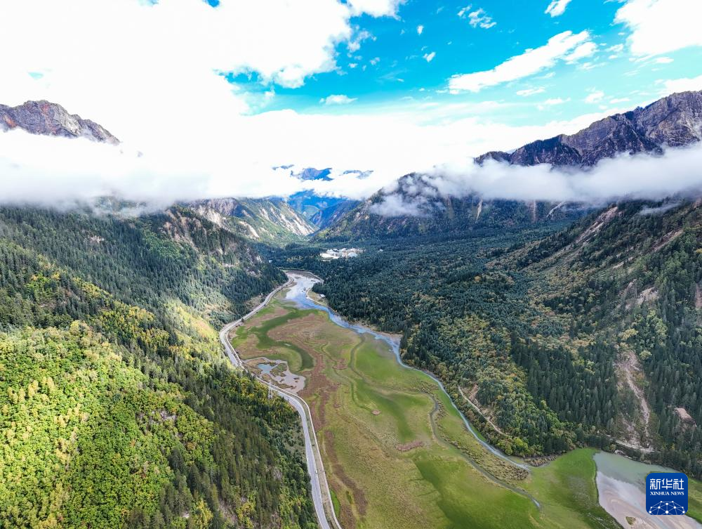 這是10月10日拍攝的九寨溝縣中國(guó)綠發(fā)華美勝地度假區(qū)(無人機(jī)照片)。新華社記者 王曦 攝