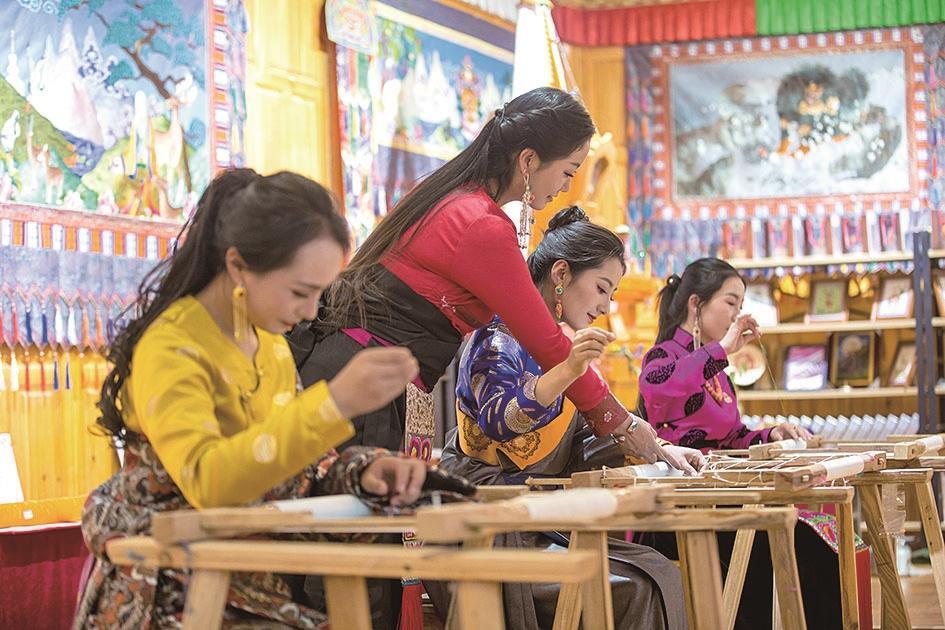 貴南是“中國民間文化藝術(shù)之鄉(xiāng)”,全縣現(xiàn)有非遺代表性項目22項,其中最具代表性的為國家級非物質(zhì)文化遺產(chǎn)“貴南藏繡”,繡品色彩艷麗、線條流暢、人物活靈活現(xiàn)、做工精美絕倫,承載著青藏高原厚重的農(nóng)耕文明和悠久的歷史文化,具有較高的藝術(shù)觀賞價值和收藏價值。近年來,貴南縣大力扶持藏繡產(chǎn)業(yè)發(fā)展,累計整合投入各類資金近1350萬元,不斷加強藏繡產(chǎn)品研發(fā)、傳承人培育、工藝創(chuàng)新,有力推動藏繡產(chǎn)業(yè)化、多元化發(fā)展。全縣現(xiàn)有2個藏繡研發(fā)基地、3個展示中心、20個藏繡工坊、4個扶貧培訓(xùn)點,藏繡從業(yè)人員4800余人(其中參與生產(chǎn)經(jīng)營人員達2600余人),研發(fā)掛件、擺件、抱枕等藏繡產(chǎn)品種類10余種。近3年,我縣藏繡產(chǎn)業(yè)累計產(chǎn)值突破5000萬元,藏繡產(chǎn)業(yè)作為文化傳承的重要載體,已成為貴南群眾增收致富的重要渠道。