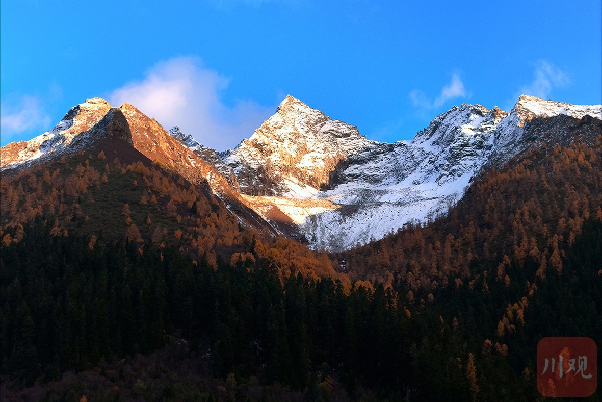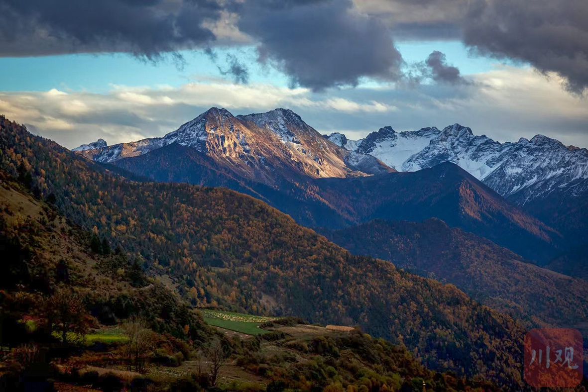 瑪嘉溝里,初冬仍有金秋余韻,金黃與火紅交織成樹木的盛裝。溪流潺潺,倒映著山色,樹葉如雪花飄落,鋪在小徑上,腳步踏上去沙沙作響,山陰處有初雪;行徑在夢筆山理小路,沿小路前行別具風情,仿佛能穿越時空。初雪覆蓋的山巒在陽光下閃耀金光,與青稞田構(gòu)成一幅絕美的田園風光。