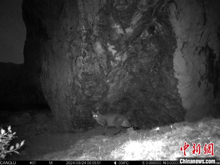 紅外相機拍攝到的荒漠貓照片。九寨溝景區(qū)管理局供圖