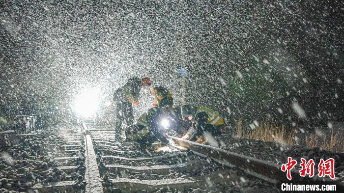 夜里,氣溫驟降,大雪紛飛。陳永祥手持道尺,穿梭在雪幕之中。他用雙手擦去鋼軌頂部的積雪,仔細(xì)測量線路的幾何偏差。每走幾步,他都會在軌枕上標(biāo)注出軌距水平,為后續(xù)改道作業(yè)提供精準(zhǔn)的調(diào)整數(shù)值。“我來核對尺寸,王長煜負(fù)責(zé)螺栓松緊,李晨現(xiàn)場防護?!彪S著作業(yè)命令的下達(dá),陳永祥的話語在冷風(fēng)中格外堅定。他們深知,每一次作業(yè)都關(guān)乎列車的安全運行,容不得半點馬虎。