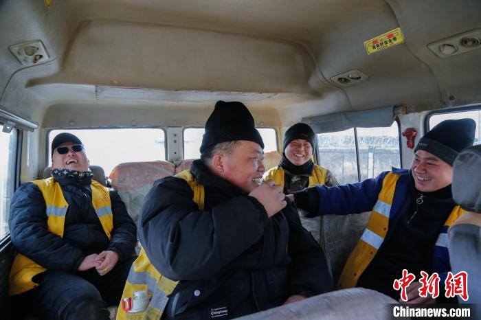 1月22日,中國北方小年,青藏集團公司德令哈工務(wù)段關(guān)角隧道工區(qū)“00后”職工郝斌(前)和工友們合影。中新社記者 馬銘言 攝