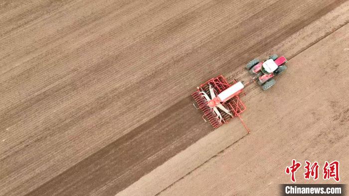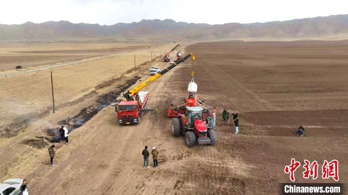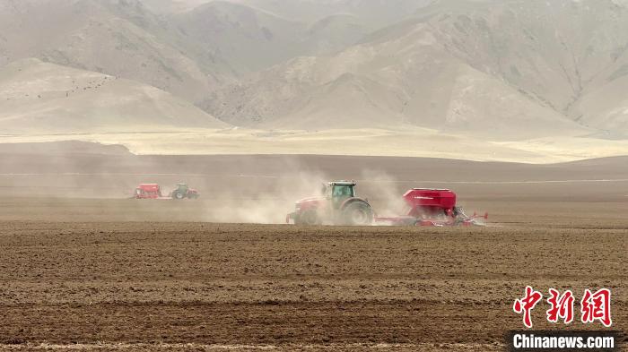 4月21日,青海省海南藏族自治州貴南縣貴南牧場,大型機(jī)械正在播種青稞。該牧場今年種植青稞品種昆侖14號(hào)共5.1萬畝,創(chuàng)全省種植青稞規(guī)模之最?!?/p>
