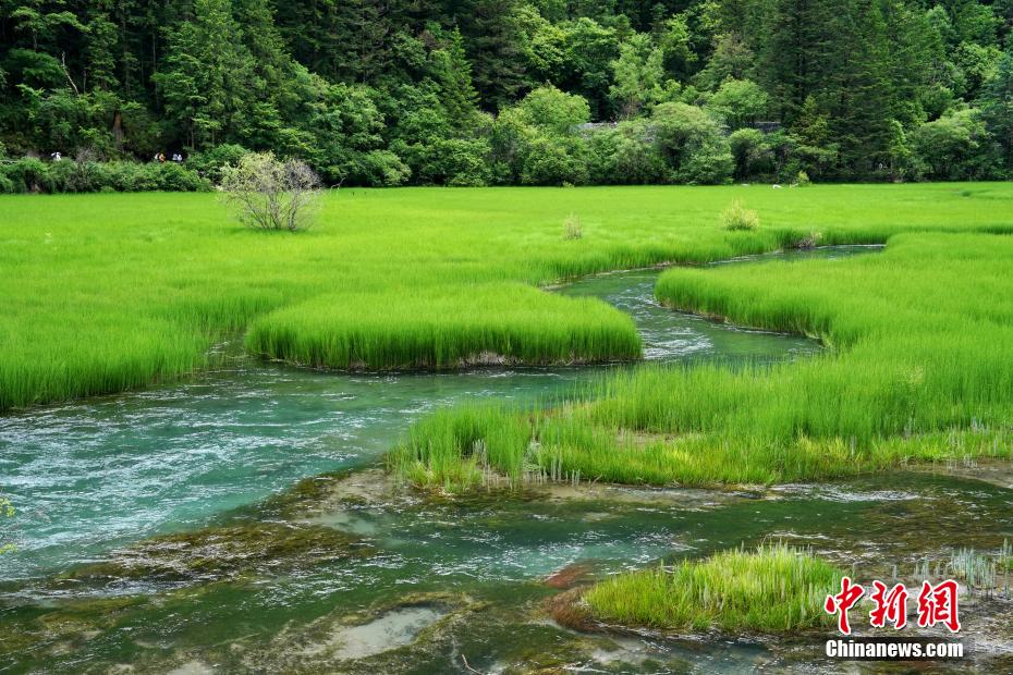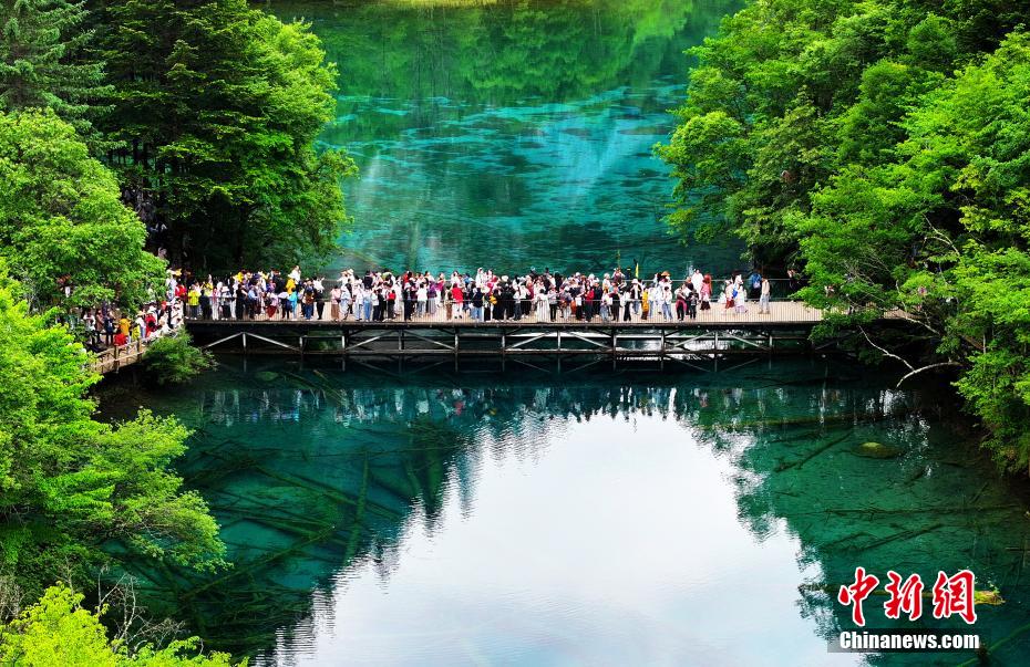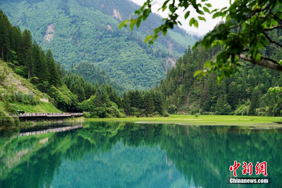 6月21日,四川省阿壩州九寨溝縣的九寨溝風(fēng)景區(qū)風(fēng)景如畫,吸引眾多游客觀光游玩。