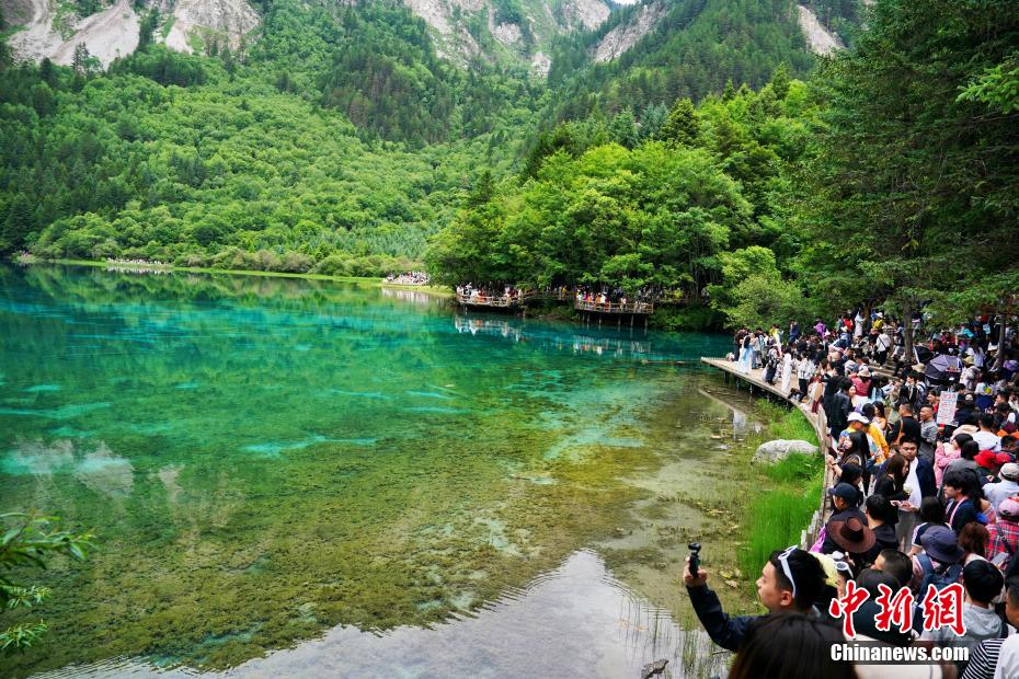 圖為游客在五花海參觀。中新社記者 安源 攝