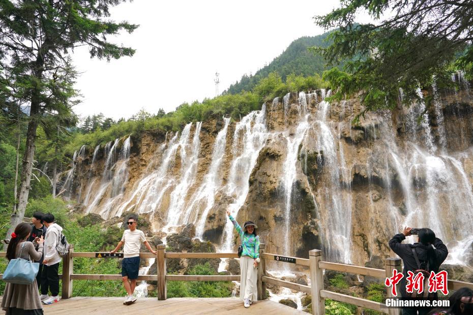 圖為游客在諾日朗瀑布拍照留念。中新社記者 安源 攝