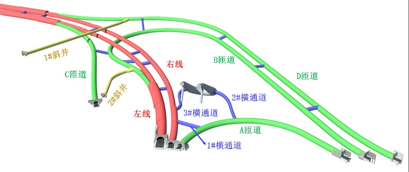 為了實現(xiàn)交通轉(zhuǎn)換,這座“T”形樞紐包含了主線特長隧道1座,其中左線長度3025米,右線長度3050米;4座匝道隧道,最長的匝道超過1400米。